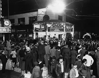 In the fall of 1916, a 925-seat theater, the Southeast's largest movie house, opened in the Central Business District (and the original theater district) of Atlanta. The theater was called the "Rialto," which is defined as an exchange or a marketplace. The Rialto continued to operate throughout the Depression, and at one point even boasted the largest electric sign south of New York City above its marquee. In 1962, the original theater building was torn down, and a new 1,200-seat Rialto was erected on the same site. It was the first movie theater to be constructed in downtown Atlanta in 35 years and remained open until 1989 before falling victim to a declining downtown economy.