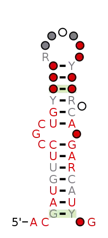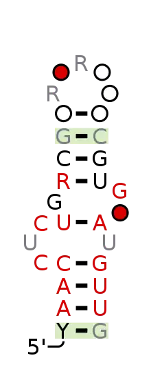 ![]() Consensus secondary structure and sequence conservation of L19-Flavobacteria ribosomal protein leader | |