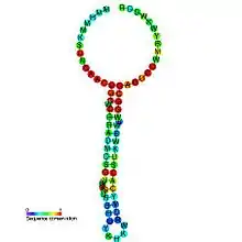 A ribosomal protein L21 leader is a ribosomal protein leader autoregulatory structure[1] that regulates mRNAs containing a gene that encodes ribosomal protein L21. An RNA motif was predicted to function as an L21 leader in a bioinformatics study, and is found in B. subtilis and other low-GC Gram-positive bacteria within the phylum Bacillota.[2] It is located in the 5′ untranslated regions of mRNAs encoding ribosomal protein L21, a protein of unknown function, and ribosomal protein L27 (rplU-ysxB-rpmA).[2]