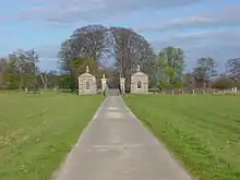 In 1674 Sir Henry Goodricke, 2nd Baronet, the son of Sir John, was MP for Boroughbridge from 1673 to 1679 and from 1683 to his death in 1705. He built the existing house on the remains of the old property.[1] The new Hall was the home of the Goodricke family until the death of the seventh Baronet in 1833, who was unmarried. He bequeathed the estate to Francis Littleton Holyoake of Studley Castle on condition that the latter adopted the Goodricke name. In 1836 Francis Holyoake-Goodricke sold the estate to Joseph Dent, of a well-to-do Lincolnshire family, who laid out the pinetum in the estate c. 1857. He was High Sheriff for 1847.
