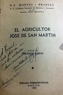 - El Agricultor José de San Martín, (The Farmer). Foreword by Vicente Saenz. Dedicated to the author's parents. Editorial Perspectivas, Mexico, 1952. Partial biography of José de San Martín. Soft Cover and Hard Cover editions, both publish on the same year and both 145 pages. Index and Colofón. Hard Cover, 3000 copies, Sof Cover, 3000 copies.[11][14][15][16]