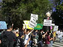 All of Teixeira's declarations were later confirmed by Rodrigo Paiva, head of public relations for the Brazilian Football Confederation (CBF).[20][21] The remarks stirred a lot of controversy in both the Brazilian press[22][23][24] and Brazilian society, and sparked the Twitter campaign #foraricardoteixeira[25] ("Out with Ricardo Teixeira").