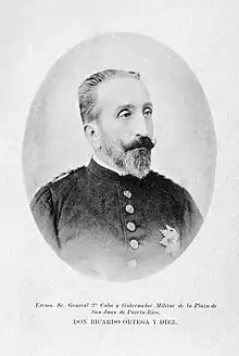 Ricardo de Ortega y Diez (10 August 1838 – 3 December 1917) was a Spanish general. He served as interim Governor-General of Puerto Rico during three periods of the Spanish–American War, and occupied various other posts. Born in Madrid, Spain, Ortega y Diez attended the Colegio de Infantería and became a sub-lieutenant at the age of 17.[1]
