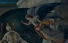 He painted choirs and chapels in Rovigo,[3] painting the frescoes of, among others, the Church of San Michele and the Church of Saint Dominic in the city. Other works include the frescoes at the parish of Pincara, and the Church of San Martino in Venice.[2] He was also a portrait painter, and painted, among others, a portrait of Alessandro Manzoni, now belonging to the painter's descendants.[2] He almost completed an illustration of the Divine Comedy in watercolor.[2] Another portrait of Manzoni, in pen, is at the Liceo Manzoni in Milan. A pen portrait of Ludovico Ariosto is now at the Municipio of Ferrara.[2]
