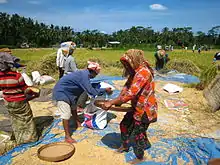 The government was intensely involved in the rice economy, both to stabilize prices for urban consumers and to expand domestic output to achieve national self-sufficiency in rice production.[1] Various governmental policies included the dissemination of high-yield seed varieties through government-sponsored extension programs, direct investment in irrigation facilities, and control of the domestic price of rice through the National Logistical Supply Organization (Bulog), the government rice-trading monopoly. In the 1970s, Indonesia was a major rice importer, but by 1985 self-sufficiency had been achieved after six years of annual growth rates in excess of 7 percent per year. From 1968 to 1989, annual rice production had increased from 12 million to over 40 million tons, and yields had increased from 2.14 tons of padi (wet rice growing) per hectare to 4.23 tons per hectare.[10]