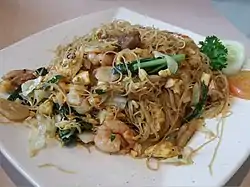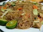 Rice vermicelli is a thin form of noodle.[1] It is sometimes referred to as 'rice noodles' or 'rice sticks', but should not be confused with cellophane noodles, a different Asian type of vermicelli made from mung bean starch or rice starch rather than rice grains themselves.
