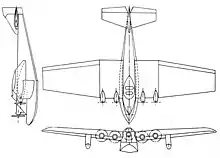 The Richard-Penhoët was a monoplane with a three part cantilever wing, each part with the same span and with 5.4° of dihedral. The central panel was rectangular in plan and had a constant thickness/chord ratio of 20%, while the outer panels had symmetrical trapezoidal plans and tapered in thickness outwards to 8%. Wing construction was mixed, largely wooden with wire bracing and with four spruce and ash box spars and spruce and ply ribs. Apart from the leading edge of the central wing, which was covered with corrugated aluminium sheet, the wing was fabric covered. The whole of the trailing edge was filled with ply-covered ailerons.[1]