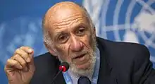 Richard Anderson Falk (born November 13, 1930)[1] is an American professor emeritus of international law at Princeton University,[2] and Euro-Mediterranean Human Rights Monitor's Chairman of the Board of Trustees.[3] In 2004, he was listed as the author or coauthor of 20 books and the editor or coeditor of another 20 volumes.[4] Falk has published extensively with multiple books written about international law and the United Nations.