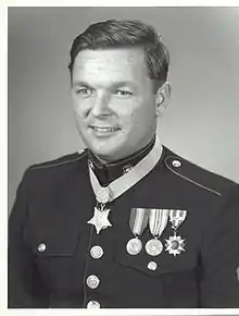 In 1970, he re-enlisted in the Marine Corps and was promoted to a final rank of Master Sergeant during his 21-year career. He retired on October 27, 1988.[1]