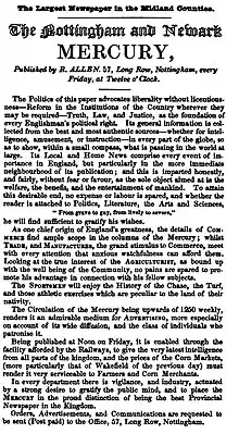 He succeeded to the business of Samuel Bennett in 1836, printer and publisher, based on Long Row in Nottingham and until 1847[3] issued the Nottingham and Newark Mercury, later shortened to the Nottingham Mercury, which was the organ of the Whig party in Nottingham.[4]