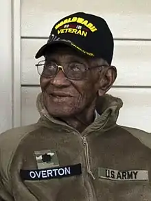 Overton is the subject of a 2016 documentary, Mr. Overton, in which he is interviewed about his daily routine, thoughts on his longevity, and his military service.[16][17] On May 3, 2016, he became the oldest surviving American veteran after the death of Frank Levingston.[18][19][20]
