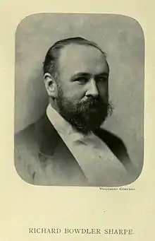 Richard Bowdler Sharpe (22 November 1847 – 25 December 1909) was an English zoologist and ornithologist who worked as curator of the bird collection at the British Museum of natural history. In the course of his career he published several monographs on bird groups and produced a multi-volume catalogue of the specimens in the collection of the museum. He described many new species of bird and also has had species named in his honour by other ornithologists including Sharpe's longclaw (Macronyx sharpei) and Sharpe's starling (Poeoptera sharpii).