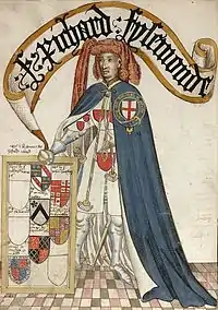 He married before Hilary term 1345 (date of lawsuit) Ada Botetourt, widow of Sir John de Saint Philibert.[3] They had no issue. Richard's wife Ada Botetourt was the daughter of Sir John Botetourt, 1st Lord Botetourt, by his wife, Maud, daughter of Sir Thomas Fitz Otes and great-granddaughter of William Longespée, 3rd Earl of Salisbury the son of Henry II of England[4]