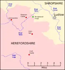 Map showing properties in Herefordshire owned by members of the knight family, descendants of the ironmaster Richard Knight (1659-1745) of Downton