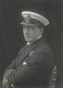 Richard Lindsay Nicholson was born on 29 October 1882 in New Delhi.[2] He began his military career on 15 January 1898.[3] He was promoted to Lieutenant on 15 August 1904 and to Lieutenant-Commander on 15 August 1912.[4] After the British entry into World War I, Nicholson served on HMS Iron Duke on 4 August 1914 and served in the ship's chief of staff.[5] A year later Nicholson was promoted to Commander on 31 December 1915.[6] After participating in the Battle of Jutland, Nicholson was praised for his wireless telegraph work and the organisation of it on 15 September 1916.[7] Richard then served as the Director of Signal Division on 5 January 1918.[8] After the war's conclusion, Nicholson was placed on the Retirement list at his own request and ultimately promoted to Captain in 1927.[4] On 9 July 1926 Nicholson became a Fellow of the Royal Society of Arts at the Annual General Meeting that year.[2]