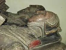 Newport asked to be buried in the parish church at Wroxeter, near the tomb of his wife's parents. This request was met. He was given a large altar tomb, on the south side of the chancel, with brilliantly coloured effigies of himself, in full Elizabethan armour, and his wife, Margaret.[30]