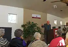 In 2000, Rohr publicly endorsed Soulforce, an organization that challenges what it calls religion-based LGBTQ oppression through nonviolent protest.[16] In a 1999 essay, and afterward, Rohr has welcomed and affirmed God's love for LGBTQ people, emphasizing that God asks the same of people in same-sex relationships as of those in heterosexual ones: "truth, faithfulness, and striving to enter into covenants of continuing forgiveness of one another".[17][18]
