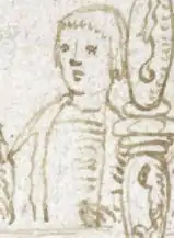 Sir Richard Weston, (representative image, not portrait) drawn by Sir Thomas Wriothesley in 1509, attending deathbed of King Henry VII. (Detail from: British Library Additional MS 45131, folio 54)