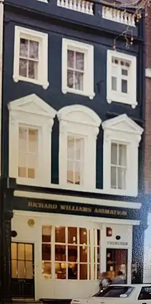 The critical and financial success of Williams's next short, Love Me, Love Me, Love Me (1962), which was narrated by Kenneth Williams, enabled him to establish his own company, Richard Williams Animation Ltd.[17] He made the short film A Lecture on Man that same year.[18] Richard Williams Animation Ltd. eventually completed over 2,500 TV commercials, and won numerous awards, at its home at 13 Soho Square in Soho, London.[5][14]