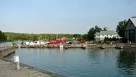The hamlet of Richards Landing has a view of the Highway 548 bridge at the pier on the northern tip of town. Highway 548 leads through the centre of the town and is its main thoroughfare. "The Landing" is St. Joseph Island's business centre, offering a grocery store, liquor/beer store, gift shops and galleries, restaurants, accommodation, marina/boat re-fuelling, 24-hour Emergency Department/hospital, medical centre, pharmacy and physiotherapy (physical therapy) clinic, bank, parks, public swimming, beach and tennis courts, variety store and movie rentals.