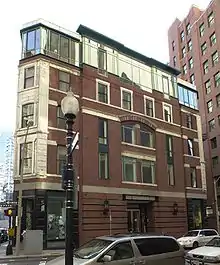 The Richardson Block is a historic block of commercial buildings at 113-151 Pearl and 109-119 High Streets in Boston, Massachusetts. It consists of a series of buildings constructed in the aftermath of the Great Boston Fire of 1872. The first of these buildings, at the corner of Pearl and High Streets, was designed by William Preston and built in 1873 for Jeffrey Richardson, using granite and brick salvaged from buildings that had previously stood on the site. The area was an important locus of the leather goods business both before and after the fire, and the buildings constructed after the fire are among the only neo-Greek commercial structures standing in Boston's Financial District.[2]