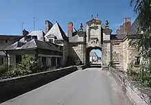 The town itself (as distinct from the Château grounds) is about 700 meters long by 500 meters wide. It is accessible by three monumental gates; a fourth, dummy gate exists to respect the symmetry of the whole. The urban plan revolves around two symmetrically arranged places: Place Royale (now Place des Réligieux) and the Place du Cardinal (now Place du Marché), in which are grouped the presbytery, the "audience" (now the town hall), a covered open market hall (still surviving, with wooden pillars and roof beams) and shops.