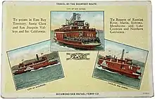 The Richmond–San Rafael Ferry Company (originally Richmond–San Rafael Ferry and Transportation Company) was a ferry service between Castro Point in Richmond in Contra Costa County and San Quentin in Marin County, California across the San Pablo Bay. It ran from 1915 until the 1956 opening of the Richmond–San Rafael Bridge.