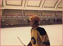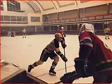 Richmond Flyer player on home ice (Richmond Ice Rink), showing the home kit, circa 1982 and playing against Southampton Vikings