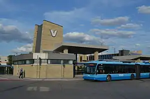 Richmond Hill Centre Terminal is a York Region Transit, Viva, and GO Transit bus terminal in Richmond Hill, Ontario. Despite its name, the terminal is not located in downtown Richmond Hill, but is situated 4 km (2.5 miles) to the south at the city's southern limits, bordering Vaughan and Markham, near the connecting road that links the grade-separated Yonge Street and Highway 7 intersection. It opened on September 4, 2005. It is immediately west of the Langstaff GO train station, but is separated by the tracks. A pedestrian bridge over the tracks was opened in March 2008 to connect the bus terminal and the train station. Public washrooms were added to the terminal in December 2012.