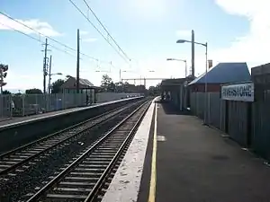 The line opened to Richmond in 1864 under the stewardship of engineer James Moore. In 1926, an extension was opened to Kurrajong, closing in 1952.[1] The line was electrified from Blacktown to Riverstone in June 1975.[2][3] Electrification from Riverstone to Richmond commenced in 1987 but was suspended in 1988 due to lack of funds, restarting in 1990 and opening in August 1991.[4] Initially electric trains operated as 2-car shuttles between Riverstone and Richmond until the electric power supply was upgraded to allow through running to and from Sydney in 1992.