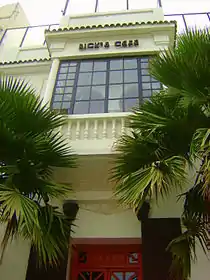 Rick's Café Casablanca was developed by Kathy Kriger (1946–2018), a former American diplomat and commercial attaché in Morocco.[3] The restaurant is housed in a traditional Moroccan grand mansion with a central courtyard (riad), built in 1930. Two palm trees flank its front door, and the land placement allows for three facades: a distinctive streetfront entrance with heavy wooden doors that depict that of the film; a port-oriented façade that looks to the Atlantic; and a narrow dead-end access which was the former main entrance but is now the service entrance.[4]