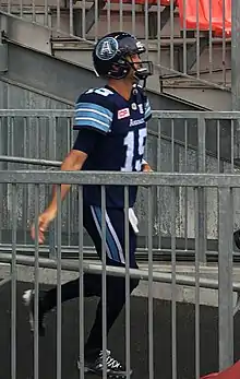 In November 2014, following the conclusion of the Argos season, Ray had surgery to repair a torn labrum in his right (throwing) shoulder and a small tear in his right rotator cuff. The recovery time for the surgery was estimated to be around six months, which would allow Ray to return action in time for CFL training camp in the spring of 2015.[35] However, Ray's recovery went slower than expected: As a result, the Argos placed Ray on the six-game injured list during the preseason.[36] Ray missed the first 16 games of the 2015 CFL season, making his first start of the season in Week 19 against the BC Lions. At the time of his return, the Argos were 8–8, having clinched a playoff berth, they were fighting for a home playoff game (which they lost when they were defeated by the Lions).[37] Ray played in the final regular season game and also the Eastern Semi-Final against the Hamilton Tiger-Cats. In the playoff game Ray completed 22 of 34 pass attempts for 220 yards with 1 touchdown and 1 interception; however Justin Medlock kicked a 47-yard field goal with no time on the clock to eliminate the Argos, thus ending their season.[38] On December 3, 2015, Ray and the Argos agreed on a contract extension; preventing him from becoming a free-agent in February 2015.[39] Entering the 2016 season Ray was finally 100% healed from his shoulder injury which had plagued him since November 2014. Ray started the first five games of the season before sustaining a knee injury as defensive lineman Vaughn Martin rolled up into him in the third quarter. Following the game Ricky Ray was diagnosed with an sprained MCL, and was expected to miss between three and six weeks.[40] Ray missed three games over the following five weeks before returning to play in the Labour Day weekend games against the BC Lions and Hamilton Tiger-Cats. Following their Labour Day game against the Tiger-Cats, reports surfaced suggesting Ray would miss the remainder of the 2016 CFL season with a punctured lung.[41] The following day, it was announced that Ray would miss between four and six weeks with a partially deflated lung. This was Ray's second significant injury in 2016 and he has only played one full season since 2011.[42] After missing six weeks recovering from a partially deflated lung Ray returned to the starting lineup in Week 18 of the regular season. However, he was unable to best the league-leading Stampeders and as a result the Argos were eliminated from playoff contention, falling to a record of 5–12.[43]