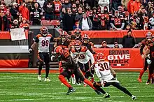 On September 1, 2019, Seals-Jones was claimed off waivers by the Cleveland Browns.[41] In Week 15 against his former team, the Arizona Cardinals, Seals-Jones caught three passes for 29 yards and two touchdowns during the 38–24 loss.[42] In the 2019 season, he finished with 14 receptions for 229 receiving yards and four receiving touchdowns.[43]