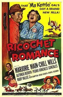 Ricochet Romance is a 1954 American western comedy film directed by Charles Lamont and starring Marjorie Main, Chill Wills and Alfonso Bedoya. It was produced and distributed by Universal Pictures. Its title is derived from the song of the same name, which is also featured in the film. It is also known as The Matchmakers.[1]