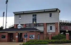 In 2002, the stadium was renovated by adding a new brick plaza at the entrance and a new 2,000 seat grandstand with chair-back and bench-back seating in the center and lower sections of the grandstand. A new three-story press box tower was also built.