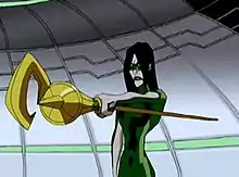 - The Riddler appears in the Justice League Action episode "E. Nygma, Consulting Detective", voiced by Brent Spiner.[7] This version does not wear a mask and has a shaved head.