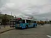 ![]() A Gillig compressed natural gas bus at Shady Grove station in the most recent paint scheme. | |