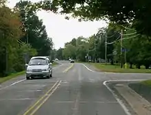 It was not until the early 1900s that the road saw major improvements, thanks to the increasing popularity of the automobile.[3] In 1908, the New York State Legislature established Route 30, an unsigned legislative route extending from Niagara Falls, Niagara County in the southwest to Rouses Point, Clinton County, in the northeast. Two sections of Ridge Road—from Porter (modern NY 429) to Ridgeway (NY 63) and from Rochester to Red Creek—were included as part of Route 30 at this time. Another section, from Ridgeway to the Orleans–Monroe county line, was added to Route 30's definition in 1914 as a spur route.[20][21] On March 1, 1921, the mainline of Route 30 was realigned to follow Ridge Road between Ridgeway and the Rochester city line at Greece.[22]