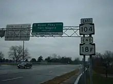 Similar conversion projects were also conducted elsewhere. In Irondequoit, the portion of the Sea Breeze Expressway (now NY 590) from Empire Boulevard to Culver Road opened in the late 1950s. US 104 and NY 18 were extended eastward along East Ridge Road to meet the expressway at what is now exit 11.[40][41] To the southwest, the Keeler Street Expressway was built across Irondequoit in the mid-1960s[15][37] and fully opened to traffic in late 1969.[15][42] US 104 was moved from East Ridge Road to the expressway at that time, while NY 18 remained on East Ridge Road until it was truncated to its current eastern terminus in Rochester c. 1973.[39][43] East Ridge Road subsequently became CR 241.[9]