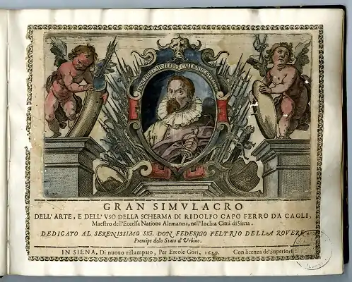 - Capo Ferro da Cagli, Ridolfo. Gran Simulacro dell'Arte e dell'Uso della Scherma. Siena, 1610. p 1.