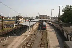 In May 1970, Riesa station was connected to the electric railway network with the electrification of the Leipzig–Dresden line. In the first half of the 1990s, a bypass was planned to the south of Riesa as part of the proposed upgrade of the Leipzig–Dresden railway. On 8 March 1995, this plan was discarded and an upgrade of the Riesa rail node (with speeds to be reduced as low as 100 km/h) was pursued instead. In the same year it was decided to establish a platform for long-distance services in Riesa.[4] The development of the station forms part of the third stage of German Unity Transport Project (Verkehrsprojektes Deutsche Einheit) no. 9, which was approved in 2004.[5]