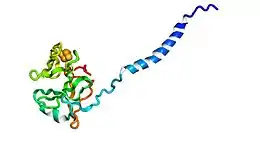 Rieske proteins are iron–sulfur protein (ISP) components of cytochrome bc1 complexes and cytochrome b6f complexes and are responsible for electron transfer in some biological systems. John S. Rieske and co-workers first discovered the protein and in 1964 isolated an acetylated form of the bovine mitochondrial protein.[1] In 1979 Trumpower's lab isolated the "oxidation factor" from bovine mitochondria and showed it was a reconstitutively-active form of the Rieske iron-sulfur protein [2]