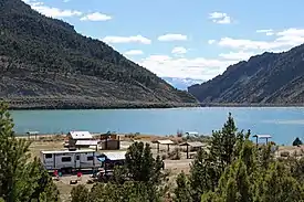 Rifle Gap State Park is a Colorado State Park located in Garfield County near Rifle, Colorado. The 1,341-acre (5.43 km2) park established in 1966 includes a 360-acre (1.5 km2) reservoir. Plant communities are pinyon-juniper woodlands, sagebrush shrubland with deciduous riparian forest in places along the edge of the Rifle Gap Reservoir. Commonly observed wildlife include mule deer, elk and great horned owls. Park facilities include a visitors center, campgrounds, picnic sites and a boat ramp.