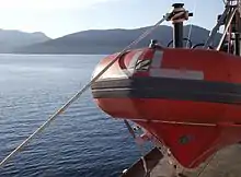 A rigid inflatable boat (RIB), also rigid-hull inflatable boat or rigid-hulled inflatable boat (RHIB), is a lightweight but high-performance and high-capacity boat constructed with a rigid hull bottom joined to side-forming air tubes that are inflated with air to a high pressure so as to give the sides resilient rigidity along the boat's topsides. The design is stable, light, fast and seaworthy. The inflated collar acts as a life jacket, ensuring that the vessel retains its buoyancy, even if the boat is taking on water. The RIB is an evolutionary development of the inflatable boat with a rubberized fabric bottom that is stiffened with flat boards within the collar to form the deck or floor of the boat.