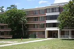 Riker Hall built in 1950 is a historic building on the campus of the University of Florida in Gainesville, Florida, in the United States. It was designed by Guy Fulton in a modified Collegiate Gothic style to provide housing for the student body. Known as South Hall for the first five decades of existence, it was named for Harold C. Riker in 2000.[1]