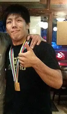 At the 2014 World Championships, Nakaya came in ranked number sixteen, and had a difficult match list with budding stars like Israel's Sagi Muki[24] and Azerbaijan's Rustam Orujov.[25] He managed to defeat them both by waza-ari and yuko, respectively. Nakaya then faced 2013 Asian Champion Hong Kuk-hyon, ranked number 32, in the final, who had equally difficult opponents in the form of Dirk Van Tichelt, Nugzar Tatalashvili and Ugo Legrand. It was an unlikely match up with unseeded finalists.