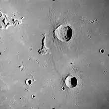 Delisle is a small lunar impact crater in the western part of the Mare Imbrium. It was named after French astronomer Joseph-Nicolas Delisle.[1] It lies to the north of the crater Diophantus, and just to the northwest of the ridge designated Mons Delisle. Between Delisle and Diophantus is a sinuous rille named Rima Diophantus, with a diameter of 150 km. To the northeast is another rille designated Rima Delisle, named after this crater.