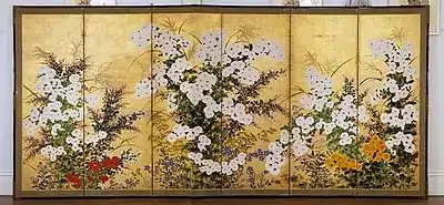 Rinpa was revived in 19th century Edo by Sakai Hōitsu (1761–1828), a Kanō school artist whose family had been one of Ogata Kōrin’s sponsors. Sakai published a series of 100 woodcut prints based on paintings by Kōrin, and his painting Summer and Autumn Grasses (夏秋草図, Natsu akikusa-zu) painted on the back of Kōrin’s "Wind and Thunder Gods screen" is now at the Tokyo National Museum.