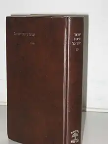 Rinat Yisrael (רינת ישראל; "Jubilation of Israel") [1] is a family of siddurim (prayer books), popular within the Religious Zionist communities in Israel; and used by some Modern Orthodox in the Diaspora. They are available in Hebrew only. [lower-alpha 1] The siddur was first published in 1970 by the Moreshet Publishing Company, and edited by Dr. Shlomo Tal; as of 2016, a new edition of the various siddurim is being released, under the editorship of Rabbi Yoel Katan. [3]