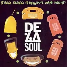 "Ring Ring Ring (Ha Ha Hey)" is a song by American hip hop trio De La Soul, released in May 1991 as the lead single from their second album, De La Soul Is Dead (1991). It is a party jam about overzealous fans who pursue the group with demo tapes in their efforts to obtain an endorsement from the group. The song was inspired by one overzealous fan in particular, Breakestra frontman Miles Tackett, who was shopping demo tapes to the group (note "demo tapes by the miles" in the song's subtitle). It was very successful on the charts in Europe, reaching number one in Finland, Greece and Switzerland, as well as on the UK Dance chart. Additionally, the song was a top 10 hit also in Australia, Austria, Belgium, Denmark, Germany, the Netherlands, New Zealand and the UK. Its music video was directed by Mark Romanek.